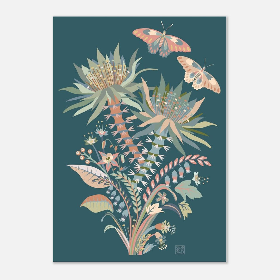 First Flight captures a serene moment of grace and growth, where butterflies drift above a bouquet of stylized wild blooms.